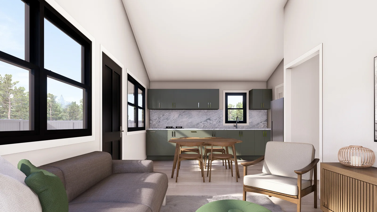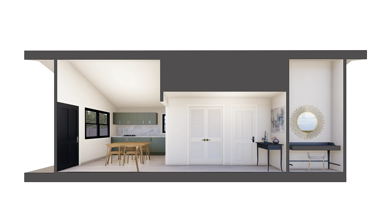 The Banksia Bungalow is a full sized, 2 bedroom, 60 Square meter home and is the perfect choice for a First Home with a starter family or a Secondary Dwelling, offering all the essentials for comfortable living in a size that feels just right. Designed with both style and practicality in mind, it features inviting living spaces, a functional layout, multiple robes and a full sized linen and laundry with thoughtful details that make everyday life easier. The Banksia is built in NSW to 8 Star Energy specifications and customisable to fit your requirements. Whether you’re settling into your first home, starting a family, looking for that unique rentable Bungalow or simply looking for a manageable space that doesn’t compromise on comfort, the Banksia Bungalow delivers a warm and welcoming place to call your own.